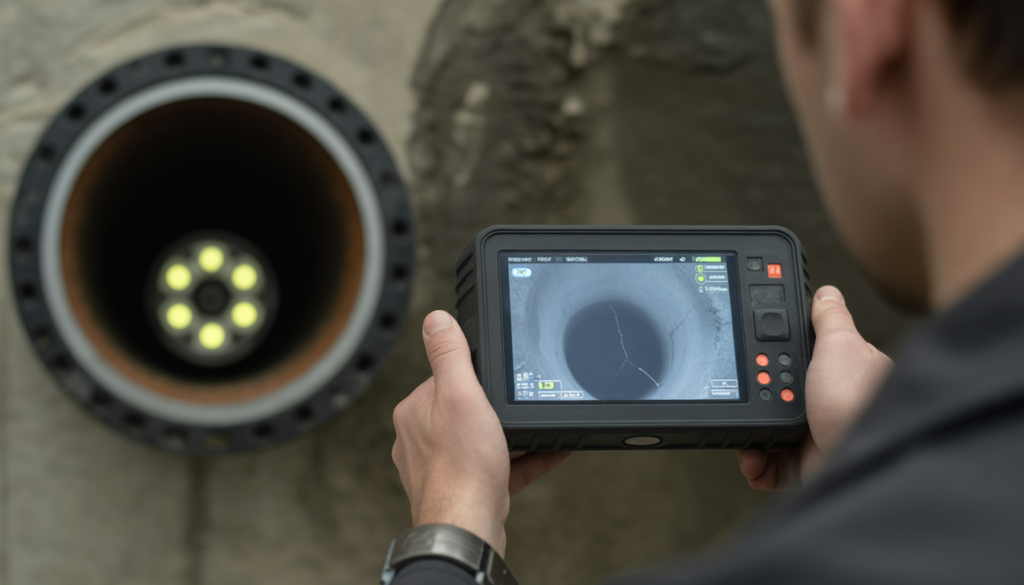 La méthode consiste à faire progresser une sonde munie d’une caméra à l’intérieur des tuyaux afin d’observer fissures, infiltrations et dépôts. Les images en direct permettent de décider rapidement de l’action à mener.